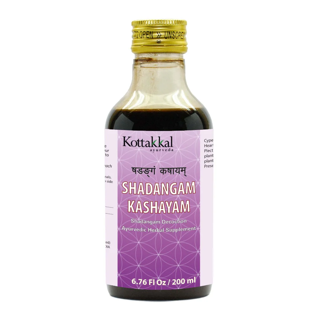 Shadangam Kashayam balances pitta dosha and is also helpful for kapha dosha. The main herb chandan (sandalwood) has cooling qualities that support pitta dominate disorders, fever, excessive thirst, indigestion, bleeding disorders, burning sensation, diarrhea, and delirium.